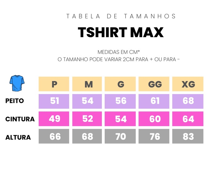 Obs: Não fazemos trocas por tamanho, por isso é bom ficar atenta à tabela de medidas.