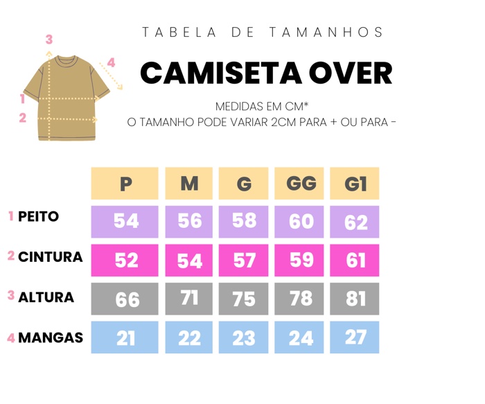 Obs: Não fazemos trocas por tamanho, por isso é bom ficar atenta à tabela de medidas.